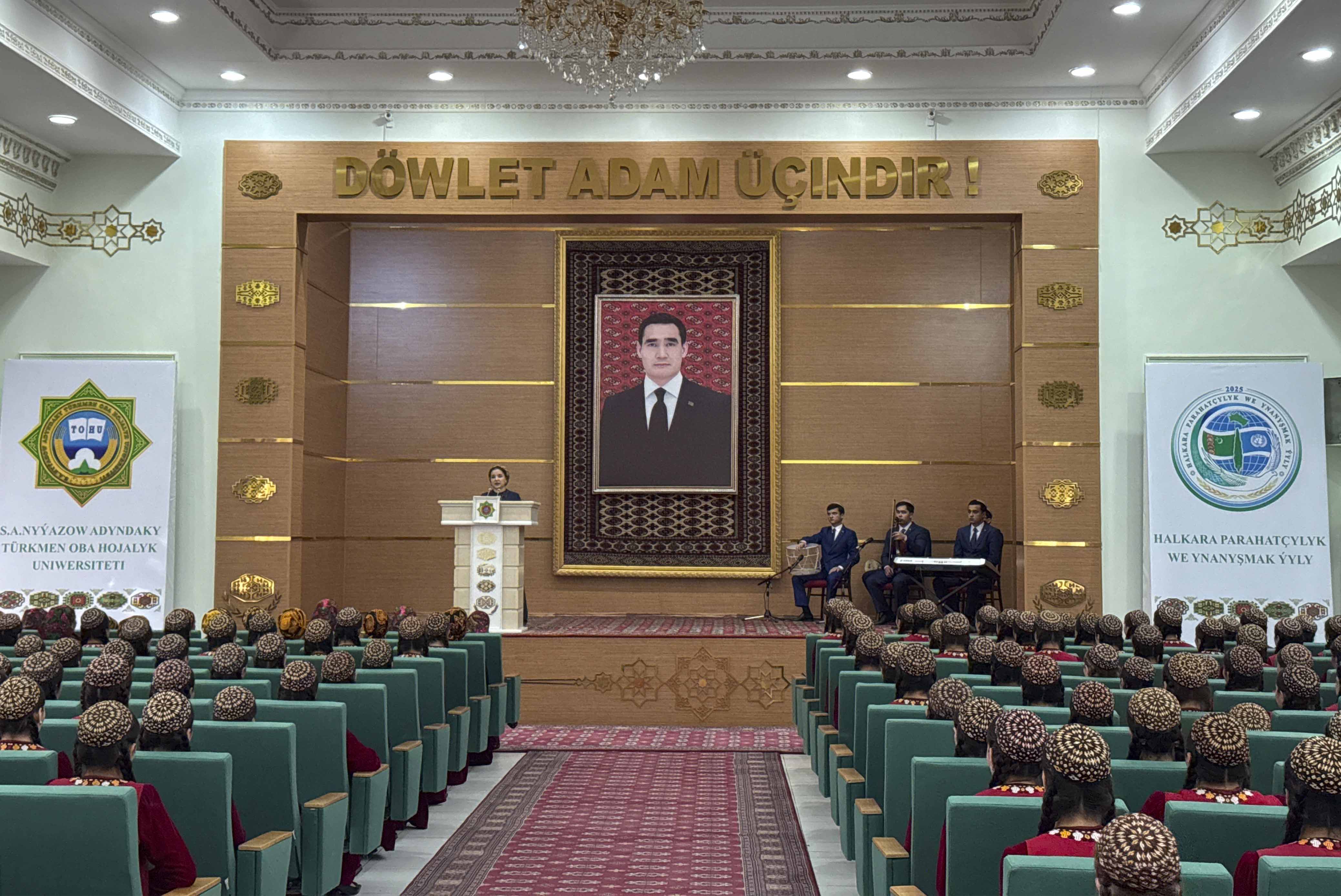 Bilimler we talyp ýaşlar güni mynasybetli baýramçylyk nyzamynda Döwlet senasy ýaňlandy, hormatly Prezidentimiz Serdar Berdimuhamedowyň täze okuw ýylynyň başlanmagy mynasybetli Türkmenistanyň mekdep okuwçylaryna, talyp ýaşlaryna, mugallymlaryna we bilim işgärlerine iberen Gutlagy okaldy, gutlag sözleri, çykyşlar diňlendi.