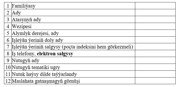 7. Maslahata gatnaşmak üçin hasaba alnyş görnüşi doldurylmaly (adaty şrift, Times New Roman, 12 pt):